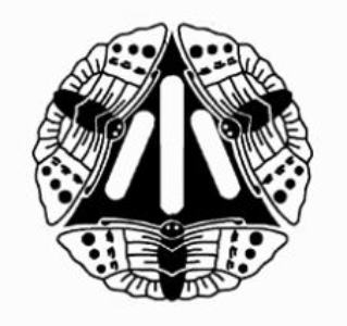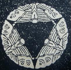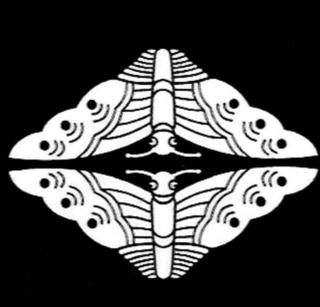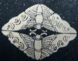 ▲建部家の家紋「建部蝶」(上)と 「三ツ蝶」(下) The Tatebe family crest "Tatebe Cho (Butterfly)" (above) and and "Mitsu-cho (three butterflies)" (bottom) |
