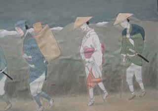 権田【閏四月六日夕方】ー坂上村上関・高橋円次郎家【七日夕方】&数人は坂上村須賀尾・上原重五郎家に分宿―六合村広池・山本市兵衛家で休息【八日夕刻】― 六合くに村和光原・山田弥平次家ヤマニ【四月十二日】ー野反池―渋沢のお助け小屋【十三日】―秋山郷和山温泉二泊【十五日】―反里口・根津仁右衛門家【十六日】ー十日町中条村・岡田寛蔵家【二十日】―堀之内村ー六日町ー新潟・藤井忠太郎家―新潟(法音寺墓参)ー酒屋陣屋【二十六日夜 】ー津川【二十八日朝】ー【二十八日夕方】会津若松・紙問屋「湊屋」善兵衛家→【二十八日夜】家老横山主税家 ・六合村和光原のヤマニ・山田家で三日ほど滞在休養して旅支度を整え、今でも車の通れない地蔵峠を越え秋山郷を目指す深い山道に分け入った。和光原ー野反のぞり池(当時は湿地帯だった)ー地蔵峠ー佐武流さぶる山の裾ー和山、のコースである。 Gonda Village [evening of leap year April 6] - Enjiro Takahashi's house in Kamizeki of Sakaue Village (some of them separately stayed at Jugoro Uehara's house, Sugao, Sakaue Village) [evening of April 7] - Ichibei Yamamoto's house, Hiroike, Kunimura Village [evening of April 8] - Yaheiji Yamada's house, so-called Yamani, Wakohara, Kunimura Village [April 12] - from Nozori Pond to "Otasuke-koya (help hut)," Shibusawa [April 13th] - Wayama Onsen Hot Spring, Akiyamago for two nights [April 15th] - Niemon Nezu's house, Soriguchi [April 16th] - Kanzo Okada's house, Nakajo Village, Tokamachi [April 20th] - moved from Horinouchi Village to Muikamachi, to Chutaro Fujii's house, Niigata (visit to the gravesite of Ho-onji Temple) and to Sakaya Jinya [night of April 26th] - Tsugawa [morning of April 28th] - paper wholesaler "Minatoya" Zenbei's house, Aizuwakamatsu [evening of April 28th] - chief retainer Chikara Yokoyama's house - After staying and resting for three days at the "Yamani," Yamada family's house in Wakohara, Kunimura Village and getting ready for the trip, they crossed the Jizo Pass, which is impassable for cars even today, and entered the deep mountain road leading to Akiyamago. The route they took was from Wakohara to Nozoriike Pond (a marshy area at that time) to Jizo Pass to the foot of Saburuyama Mountain and to Wayama. - After leaving Yaheiji Yamada's house, so-called Yamani, on April 12, Kuniko, Yokiko, and thier escort split up with Mrs. Michiko and her escort, who had taken the above route, and under the guise of visiting Zenkoji Temple, they crossed the Shibu Pass north of Kusatsu-Shirane Mt. and headed for Echigo in the Shinshu direction. The two groups met by chance at Horinouchi Village in Echigo. |