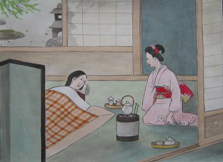 絵:清水市衛道子夫人は会津戦争直前の6月10日、南原の避難所で女児を出産、国子と名づけた。小栗上野介の唯一の遺児である。出産後、難を避けるためか、さらに南へ行き松川村で冬を迎えた。 *南原、松川ともに、どこにいたのか詳細は判明していない。 Birth of Kuniko Mrs. Michiko Oguri gave birth to a baby girl at a shelter in Minamihara during the Aizu War and named her Kuniko, the only surviving child of Kozukenosuke Oguri. After the birth, Mrs. Oguri went further south and spent the winter in Matsukawa village, probably to avoid any difficulties. *The details of where she was in both Minamihara and Matsukawa are not known. |