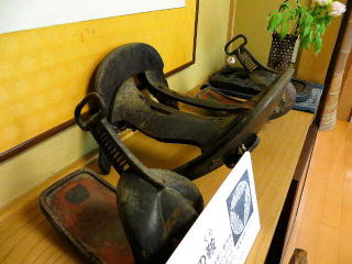 | ◇2014平成26年5月、東善寺の古くなって使っていなかった土蔵を解体したところ、古びたホコリまみれの馬の鞍と鐙(あぶみ)が見つかった。ホコリを払ってよく見ると、鞍には蝶の家紋が付いていた。どこかで見たことがある、調べると建部家の家紋「三ツ蝶」であった。 ◇小栗家の用人塚本真彦は、道子夫人が小栗家へ嫁ぐに際して建部家から移った家臣であるから、この鞍は塚本が使っていたものと思われる。 ◇塚本一家は主君小栗忠順の移住に従って、真彦・母マキ・妻・長女シサ・次女◯・三女◯・長男◯、と計7人家族(幼男女4人・と大人3人)で権田へ移住し、東善寺に仮住まいしていた。 ◇小栗忠順主従の災難に際して、塚本一家も悲劇に見舞われている。詳しくはコチラ Horse saddle of Tatebe Family found In May 2014, when Tozenji's old and unused storehouse was dismantled, a horse saddle and stirrups were found, with the family crest of the Tatebe family, "Mitsu-cho (three butterflies)" on the saddle. Masahiko Tsukamoto, a retainer of the Oguri family, moved from the Tatebe family when Michiko married into the Oguri family. Therefore, this saddle is believed to have been used by Tsukamoto. The Tsukamoto family moved to Gonda with a total of seven members (four young children and three adults) and temporarily resided at Tozenji Temple. The family members were Mahiko, his mother Maki, his wife, daughter Shisa, two other daughters, and a son. The Tsukamoto family also suffered a tragedy after Tadamasa Oguri was killed. For more information, click here. |