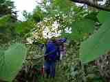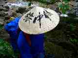 雨模様にはこの笠がいい。(稜線では風に飛ばされる恐れがある) |