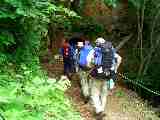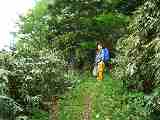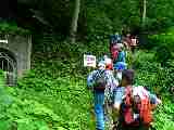 *道子夫人らは対岸の道(廃道)を歩いた。 |