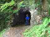 トロッコ道は人手で作られ、いまはレールのない水平道となっている。