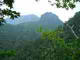 峠からの下り、右手には佐武流(さぶる)山、苗場山がちらっと見えた