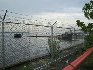 ▲アライダ号に乗り込んだ波止場付近 ▲ The seashore of South Amboy: The Japanese delegation got on boad the steamboat Alida at a wharf in this area on June 16, 1860. |