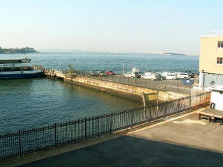 ▲波止場・マンハッタン島 アライダ号からここに上陸し、ニューヨークの大歓迎を受ける行進が始まった。使節一行が上陸した波止場は埋め立てられて、現存しない。 ▲ A wharf at the southern tip of Mahattan: The Japanese delegation landed at Pier No. 1 in this area and paraded the streets of New York receiving a huge welcome. The pier does not exist because of reclamation of the sea. |