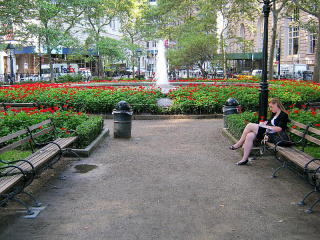 ▲バッテリー・パーク マンハッタン島の最南端の波止場付近の公園。 ▲ Battery Park: Battery park is a park at the southern tip of Manhattan island. The Japanese delegation landed at Pier No. 1 near the park. |