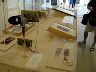| ▲立体写真 当時最新の立体写真の覗き眼鏡もあります。 ▲ Stereograph: Special glasses are exhibited for visitors to see stereographs which were of leading-edge technology in mid-19th century. |