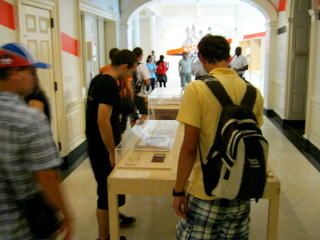▲観客 会場には日系人、アメリカ人を問わず、大勢の人が次々に訪れて、資料に見入っていました。 ▲ Visitors: While we were at the exhibit, they had many visitors, Americans and Japanese, who were eagerly looking into the exhibits. |