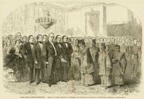 | <On board the USS Powhatan> Departed from Shinagawa, Edo (Tokyo) on WC February 9, 1860 (JC Jan. 18 of Ansei 7, which became the first year of Man'en from March 19) - Pacific Ocean - Hawaii - Arrived at San Francisco on WC March 29, 1860 (JC March 8 of Ansei 7) - Panama - (crossed the Isthmus of Panama by train) - Caribbean Sea <On board the USS Roanoke> Caribbean Sea - Arrived at Washington on WC May 14, 1860 (JC leap March 24 of Man'en 1) - (took train to Baltimore and Philadelphia and arrived at New York by a steamboat on WC June 16, 1860 (JC April 27 of Man'en 1). <On board the USS Niagara> Departed from New York on WC July 1, 1860 (JC May 13 of Man'en 1) - Atlantic Ocean - Luanda (Angola) - Batavia (Indonesia) - Hong Kong - Arrived back to Japan (Yokohama) on WC November 10, 1860 (JC September 28 of Man'en 1). (It was an eastbound round-the-world voyage.) ■ In history education after the Meiji era, the itinerary and achievements of the mission to the U.S. have been hidden and replaced by the "crossing of the Pacific Ocean by the Kanrin Maru." |