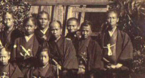 | Mataichi Oguri, the adopted son of Kozukenosuke, studying at the French Language Institute (Second row, center) (Photo by Mr. Christian Pollack) | Teijiro Kurimoto (adopted son of Joun Kurimoto) (Third from left) (Photo by Christian Pollack) |