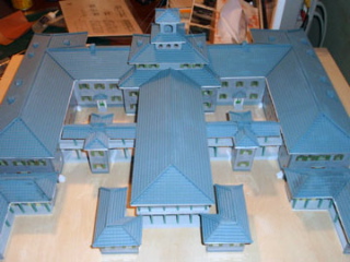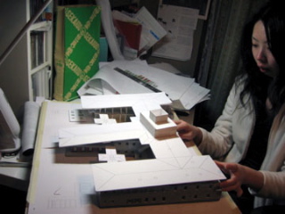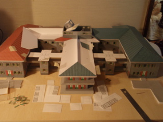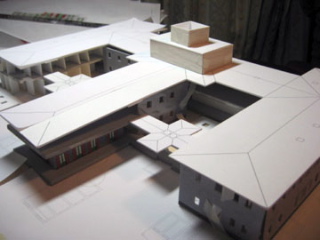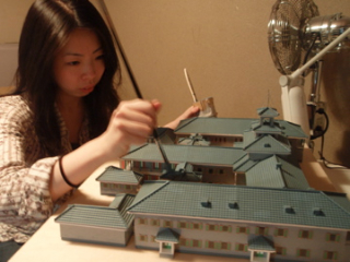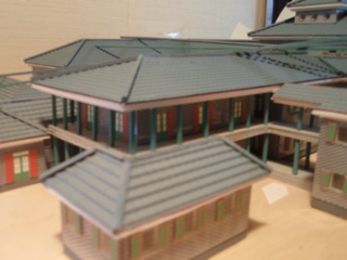 | ▲築地ホテルの模型 制作者は金田さん(R大学・理工学研究科建築学専攻修士課程の学生さん)2008年4月、東京での小栗上野介展で披露し、現在は東善寺で展示中です。 ▲ A model of the Tsukiji Hotel: It was created by Ms. Kaneda, a student of the Master's Program in Architecture at the Graduate School of Science and Engineering at R University. It was shown at the Kozukenosuke Oguri Exhibition in Tokyo in April 2008, and is currently on display at Tozenji Temple. |