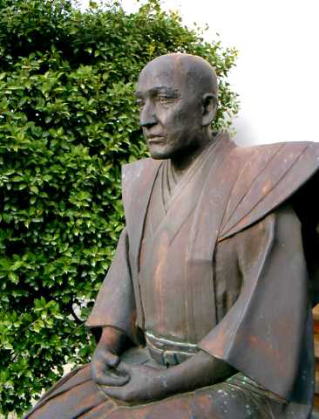 | Statue of Kozan Takai (At the Entrance of Kozan Takai Memorial Museum) Kozan Takai of Obuse, Nagano Prefecture, was known as a wealthy farmer, painter, and scholar. In his later years, Hokusai Katsushika visited Obuse and left many paintings because he was invited by Kozan. If you enter the memorial museum, which is housed in Kozan Takai's mansion, you will find a separate studio called "Hekiiken" built for Hokusai in the courtyard. |