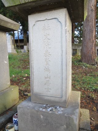 of Kozan Takai It is located In the precincts of Shounji Temple in Obuse Town (a little east of Obusedo). Posthumous Buddhist name: "Kobun-in Taiken Kozan Koji" ...is written. Coincidentally, it has the same name as the creator of this Web site, Taiken Murakami, for which I'm grateful. |