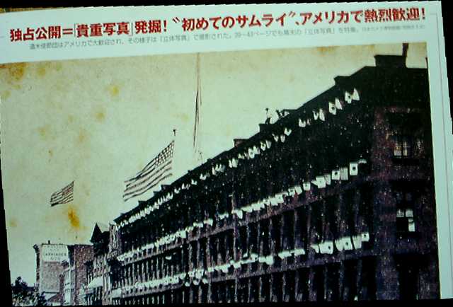タイトルが「咸臨丸、太平洋横断へ出帆 日本人の手で初めて」 ****************************** 大きな画像はブロウドウェーをパレードしてメトロポリタンホテルに到着した遣米使節一行の新聞挿絵。でもその下には、波にもまれる「咸臨丸」が載っている。 **************************** これでまた「咸臨丸で」渡米した遣米使節一行という誤解が広まることだろう。 The title is "Kanrin Maru Sets Sail for Pacific Ocean Crossing, First Time by Japanese" ****************************** The large image is a newspaper illustration of the envoys parading down the Broadway and arriving at the Metropolitan Hotel in New York. However, the ship shown below it is the "Kanrin Maru" being caught in the waves **************************** This will again spread the misconception that the envoys went to the U.S. "on the Kanrin Maru." ![]() |
