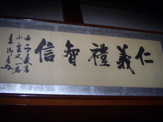 ![]() ▲小栗家の遺族に礼を述べた東郷平八郎 ▲書額 「仁義礼智信 (記念艦三笠にて・横須賀市) 壬子夏為 小栗又一君 東郷書」東善寺蔵 Heihachiro Togo who thanked Oguri's bereaved family (A Frame At the Mikasa Historic Memorial Warship, Yokosuka City) |