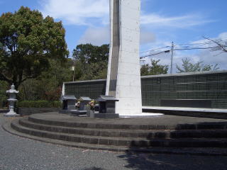 A memorial tower for the war dead from the Seinan War is on the roadside. |