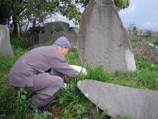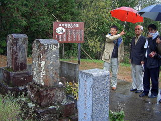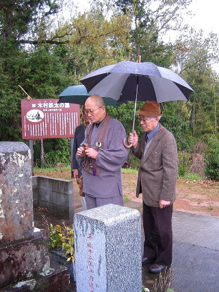 Tetsuta Kimura died of illness in Edo on March 5, 1862 (February 5 of Bunkyu 2 in Japanese calender), and was buried at Shinagawa Tokaiji Temple. However, the tombstone is not found in the precincts of the temple, although the epitaph written by Ritsuzo Tezuka remains in the records. There used to be many gravestones of the Kimura family here in the grassy meadow. Mr. Takano said it was a pity that the area was recently cleaned up and there were only three gravestones left.