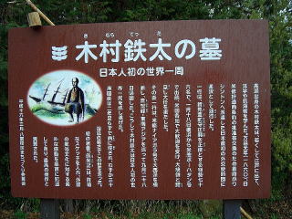 墓の下に木村家の跡が見える。廻船問屋で裕福だったことを背景に江戸で学ぶうちに遣米使節従者に抜擢されたらしい。