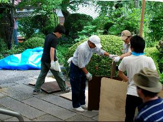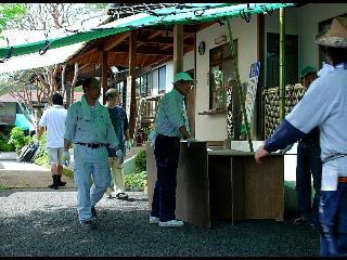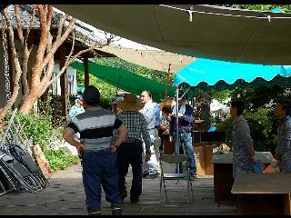 | 23日のセッティングは、午後1時30分~ おおぜいのボランティアが駆け付けてくれて、手早くテントが立ち、タープが張られてゆきます。 | ||