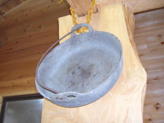 was erected in 1978. (Right) It was delicious! The original HOROKU (earthenware baking pan) was hung on a pillar at Mimmin-an food shop which sells HOROKU-YAKI confectionery. At the inn Nishikawa, they served delicious fish more than we could eat. |