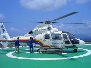 before boarding the helicopter at Hachijojima. Everyone passed the check. |