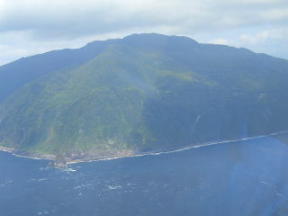 | The helicopter carried nine passengers. We flew back north from Hachijojima, and soon the coast of Mikurajima came into view. | ||