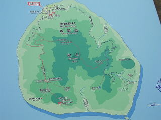 | お椀を伏せたような島、という形容にふさわしく、周囲は太平洋の荒波に削られ、切り立った断崖が囲む。 | ||