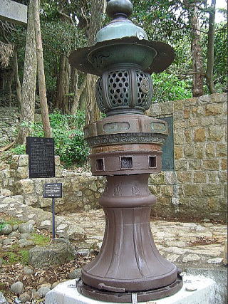 | (Left) Lantern in the precincts of Inane Shrine: If you look closely at the base, you can see a number of square holes.
