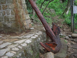 and 460 Chinese employed by the ship on their way to America. The picture was taken in the office of the island's director of education. (Right) Anchor: Remains at Inane Shrine. There were two of them, one large and one small. If thay don't do something to preserve them, they will rust and lose their shape due to the sea wind, and may disappear. |