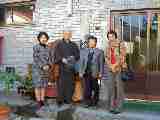 | 案内してくれた町教委の桑原さんと村上文化財保護会長さんら Mr. Kuwabara of the town's Board of Education and Mr. Murakami, chairman of the Cultural Properties Protection Association, showed us around. |