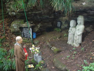 姉妹観音 ■姉妹観音 小栗家の用人塚本真彦の幼女二人を悼んで建てられた 平成4年12月、小栗上野介顕彰会は殉難した幼女二人を悼んで、この観音像を相間川のとおらず渓谷のほとりに建てた。一石から姉妹を彫った珍しい像。制作:萩原義雄(吉岡町) 小板橋良平著『小栗上野介一族の悲劇』に詳しい。 Statues of Shimai (Sisters) Kannon The statues were erected in memory of two young daughters of Makiko Tsukamoto, a servant of the Oguri family. In December 1992, the Kozukenosuke Oguri Honoring Society erected these Kannon statues by the Aima River in memory of two young girls who were martyred. They are rare statues of two sisters carved from a single stone. Created by Yoshio Hagiwara (Yoshioka Town) For detals of the story, see "Oguri Kozukenosuke Ichizokuno Higeki (The Tragedy of the Kozukenosuke Oguri Clan)" by Ryohei Koitabashi. |