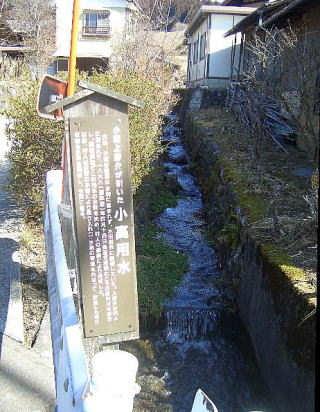 小高用水 権田村字小高の部落は流水が乏しく、いつも田植えの水確保に困っていた。上野介が観音山に器械測量で簡単に水を引いたので、小高部落の人々は小栗上野介に頼んで尾根向こうの稲瀬沢から引く用水の道を測量してもらった。 小栗の死後に完成したその用水は、今も小高の集落をうるおし続けている。 →小高用水 Kotaka Irrigation Waterway The community of Kotaka in Gonda Village was always having trouble securing water for rice planting due to the scarcity of running water. Seeing Kozukenosuke Oguri had easily drawn water to Kannon-yama Mt. by instrumental survey, the people of Kotaka asked Oguri to survey the path of irrigation water to be drawn from Inasezawa on the other side of the ridge. After Oguri's death, the irrigation system was completed and continues to supply water to the Kotaka community to this day. → Kotaka Irrigation Waterway |