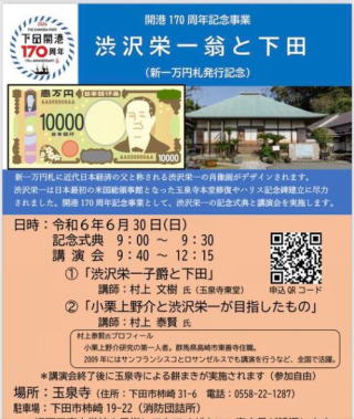 | 30日(日) | 10時~ 下田 玉泉寺様で小栗上野介 公開講演会 ![]() 【幕末歴史講演会】―小栗を知らずして幕末は語れない!― 1,村上文樹東堂(前住職)「渋沢栄一子爵と下田」 2,村上泰賢「小栗上野介と渋沢栄一が目指したものー小栗上野介の日本改造ー」 詳しくは→下田市・玉泉寺HP→お知らせ …3年前に企画し、コロナで一時休止した記事ですが、復活して実行でした *念の為電話しておでかけ下さい。0558-22-1287玉泉寺様 サクラ歓迎 講演のあと、境内で「投げ餅」があり、大勢の子供達や大人が歓声を上げて拾って、楽しいフィナーレになりました。「下田でも昔は上棟式などでよく餅投げがあったけれど、今回は久しぶりにやりました」と東堂さんの感慨。 ![]() 純米吟醸「玉泉寺」 「小栗上野介忠順と渋沢栄一の思い」 ▲投げ餅で賑やかな声が上がる 新1万円札発行記念:権田の牧野酒造で造ってもらい、お土産としました。 |