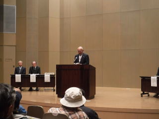 | 会場いっぱいに小栗ファンが詰めかけ、熱心に聴いてくれた。手島さん提供の『郷土読本』 (昭和7年群馬県教育会発行)には郷土ゆかりの偉人として小栗上野介が挙げられていた。小栗さくらさんにまず読んでもらうと、県外からもやってきた大勢の小栗さくらファンは満足そう。当時の県内の小学生は皆小栗上野介を学んでいたということになる。むしろ戦後のほうが小栗の名が知られなくなった、と手島さんは語る。 戦後の上毛かるたはこの『郷土読本』が下敷きになって制作され、初め浦野匡彦氏の原稿では挙げられていたが、GHQの指示で認められなかった経過があり、小栗さくらさんは「小栗かるたを作ったら?」と提案する。 後半になって上毛新聞で連載中の「上州と小栗の幕末維新」担当の江原昌子記者が取材中だったので、登壇していただき取材の意図などを語ってもらった。 紙面 ◆上毛新聞11月5日 |