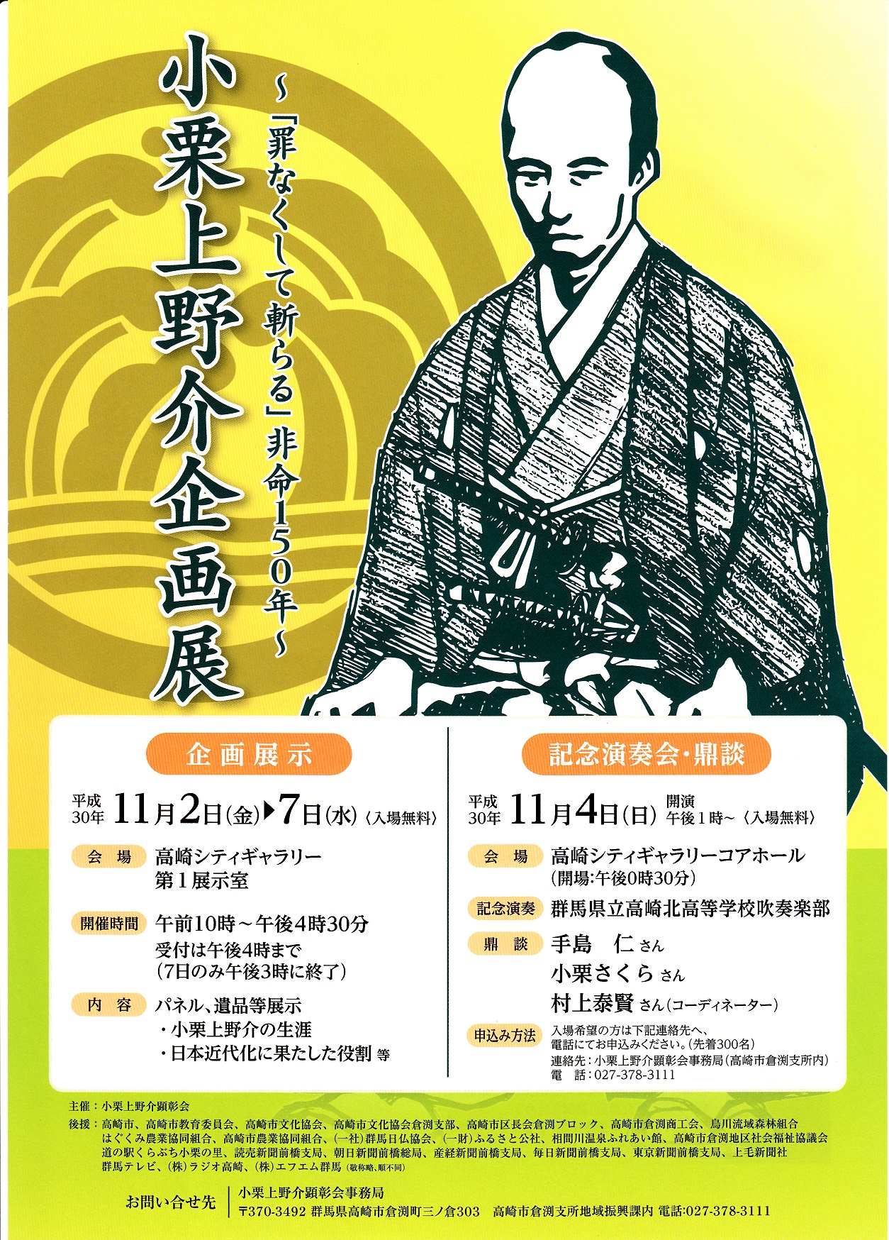 | HP東善寺 ●● 非命150年 小栗上野介企画展 2018平成30年 高崎市シティギャラリー |