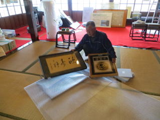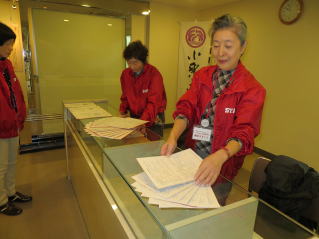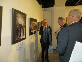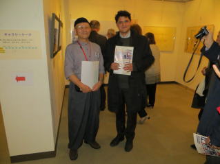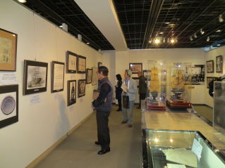 | ▲「見たことがない資料がいっぱい!」「目からウロコが落ちる展示」とほめていただく。 | ▲日仏交流の研究家ポラックさんがフランス人の団体を案内してきて、熱心に参観 |