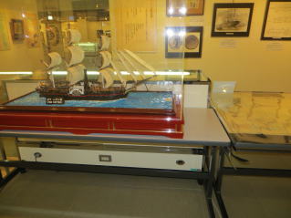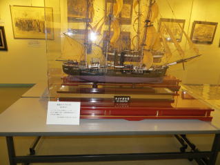 | ▲ポウハタン号 帆船模型 遣米使節はこの米軍艦でハワイ―サンフランシスコ―パナマまで行った。 |