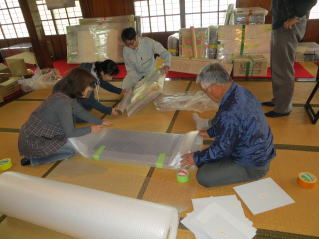 | ▲ 東善寺本堂で企画委員が集まって、帆船模型と築地ホテル模型以外はすべて手作り梱包作業で経費を節約 2015平成27年11月10日 | ||||||||||||||||||||||||||||||||||||||||||||||||||