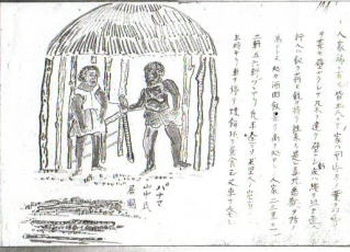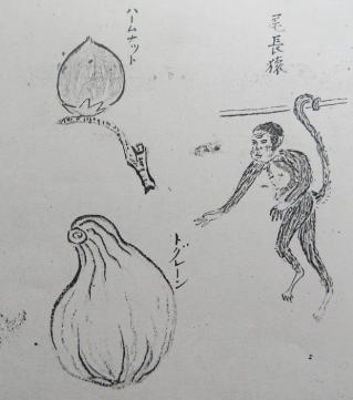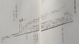 ![]() ▲「蒸気車の図」 賄方・加藤素毛『二夜語』より ▲ "Jokisha-no-Zu (Drawing of a Steam Locomotive)" from "Futayo-gatari" by Somoh Kato, cook |