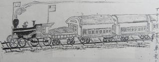 ▲「火輪車」 小栗の従者木村鉄太画「航米記」より ▲ "Karinsha (Steam Locomotive)" from "Kobeiki (Report on voyaging to America)" by Tetsuta Kimura, Kozukenosuke Oguri’s servant |