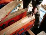 修復工事が始まり、保存してあった彫刻も、化粧直しして使えるものを生かします。 | ||