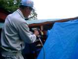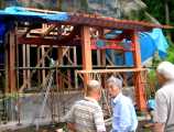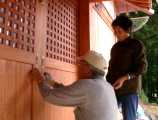 | 観音清水からみた工事 | 棟梁の佐藤信幸さん | 東の参道から | 獅子の彫りもの |