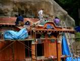 | 保存してあった唐破風を復元 | 屋根に銅板を貼る | 銅板が貼られてゆく | 扉をつける |