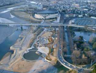 県庁32階展望ホールからの幸の池とグリーンドーム 左は利根川 晴れた日は上州の山野を四方に眺められるすばらしい展望ホール |