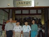 Descendants of General Togo visit the Tozenji temple In August 2004, Mrs. Muneko Hosaka, the great-granddaughter of General Togo, visited the temple with her husband, Yoshio, and their two sons. She said that she was surprised to see her great-grandfather's calligraphy introduced on NHK TV's "Sonotoki Rekishi-ga Ugoita - Oguri Kozukenosuke" and wanted to visit the temple. Mrs. Muneko and her husband attended an international conference in St. Petersburg, Russia in March 2004 to commemorate the 100th anniversary of the Portsmouth Peace Treaty and she gave a lecture, "My Great-grandfather's Way of Life and I." In the lecture, she mentioned this calligraphy and said that her great-grandfather frankly acknowledged the achievements of Kozukenosuke Oguri, who was killed by the Meiji government forces, and invited the descendants of Oguri to his house to thank them. Mrs. Muneko also said that her great-grandfather was such a person of sincerity. Calligraphy plaque and great-granddaughter's family Mrs. Muneko Hosaka, great-granddaughter of General Togo, her husband and their two sons in front of the plaque. August 2004 (Heisei 16) As an aside, the eyes of Mrs. Muneko resembled Heihachiro Togo's so much that I was quite surprised. |