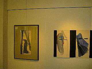 | ▲会場「ギャラリーインペリアル」は「パール・インペリアル」の右手・地下にある。 | ▲今回の展示は畠山さんと吉岡さん(丹後・加悦町)と東善寺が所蔵する作品で構成されています。 | |