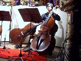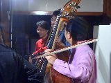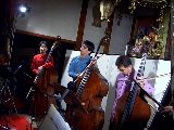 | 講話を聴いたあとのお客さまが、ボツボツ座りはじめ、たちまちいっぱいになりました | 午後5時、いよいよコンサートの開始 | コントラバスだけの四重奏は珍しい | |