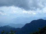 二度上(にどあげ)峠から約2時間の尾根歩きで、コースは深い雑木林の中の登下行を繰り返し、最後に急な上りがあって、頂上の西の肩に達する。