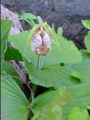 クマガイソウ 熊谷次郎直実が戦場で母衣(ほろ・後ろからの矢を防ぐ布袋)を背負って戦う姿になぞらえた名。 同じ仲間に平敦盛になぞらえた「アツモリソウ」がある。 |